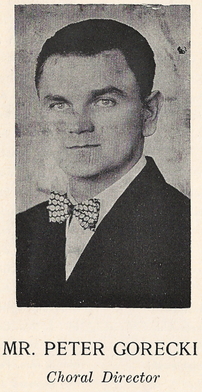 He also directed the United German-American Singing Societies, the Kalina Singing Society, the Polish Singing Circle and the choir at St. Stanislaus Catholic Church. Born in Pszcyna, Poland, the son of a church organist, Mr. Gorecki attended the music conservatory in Katowice, Poland, and the Handel Conservatory in Munich, Germany. During World War II, he was forced to work in a labor camp in Germany. In a displaced-persons camp after the war, he organized a choir and began composing and arranging his own music. He left Germany in 1949 and came to the U. S. After a couple of years on Long Island, he moved to Buffalo and started playing organ at St. Stanislaus Church. Soon, to support his growing family, he was working with several different choirs.